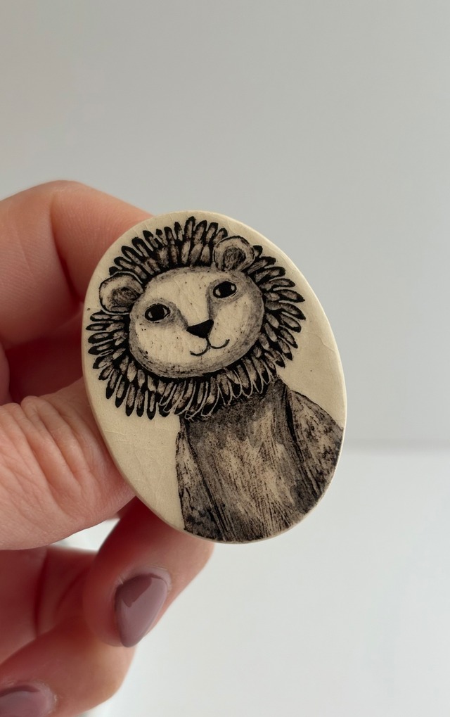 リトアニア Adomasさんの陶器ブローチ エキゾチックなライオンさん