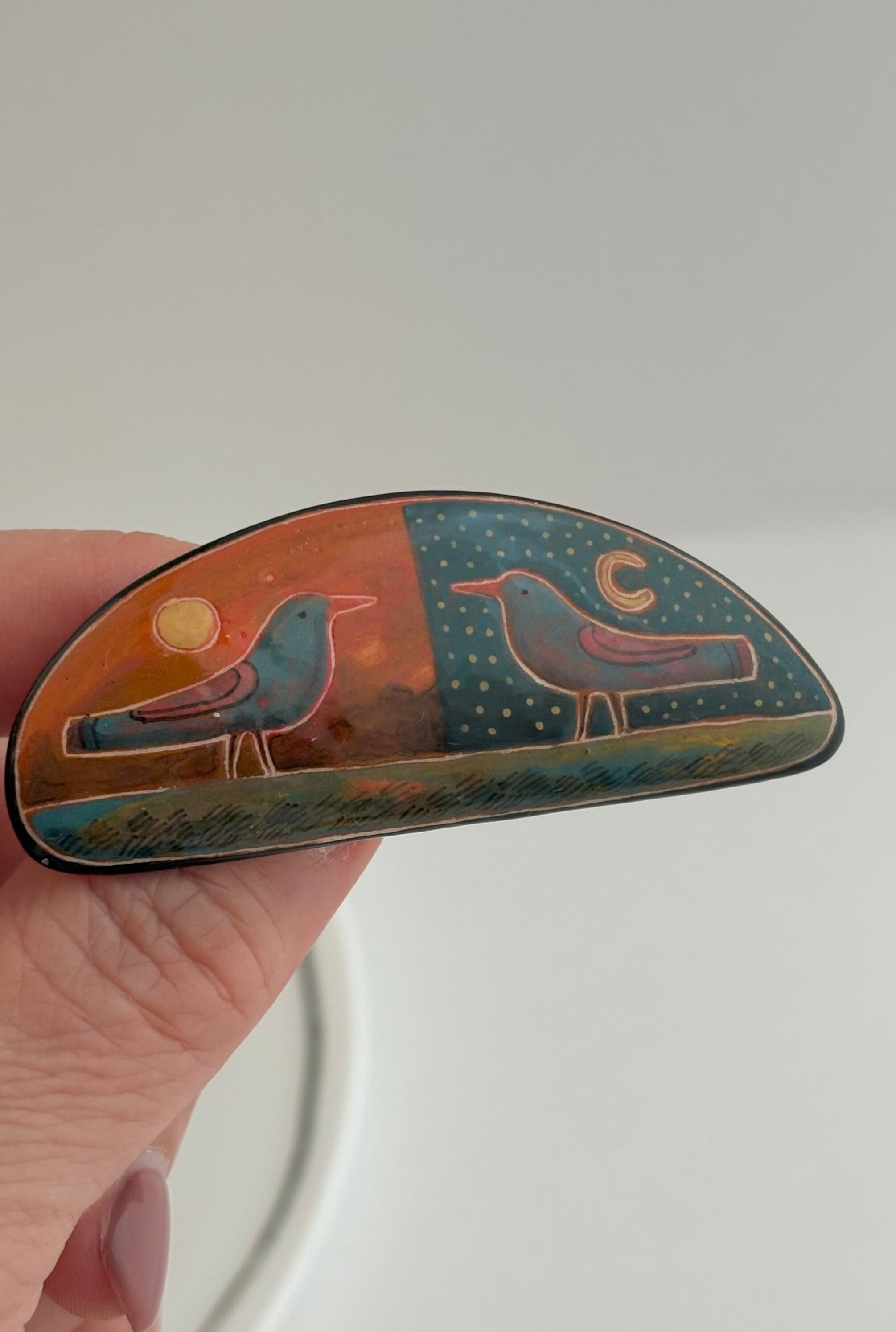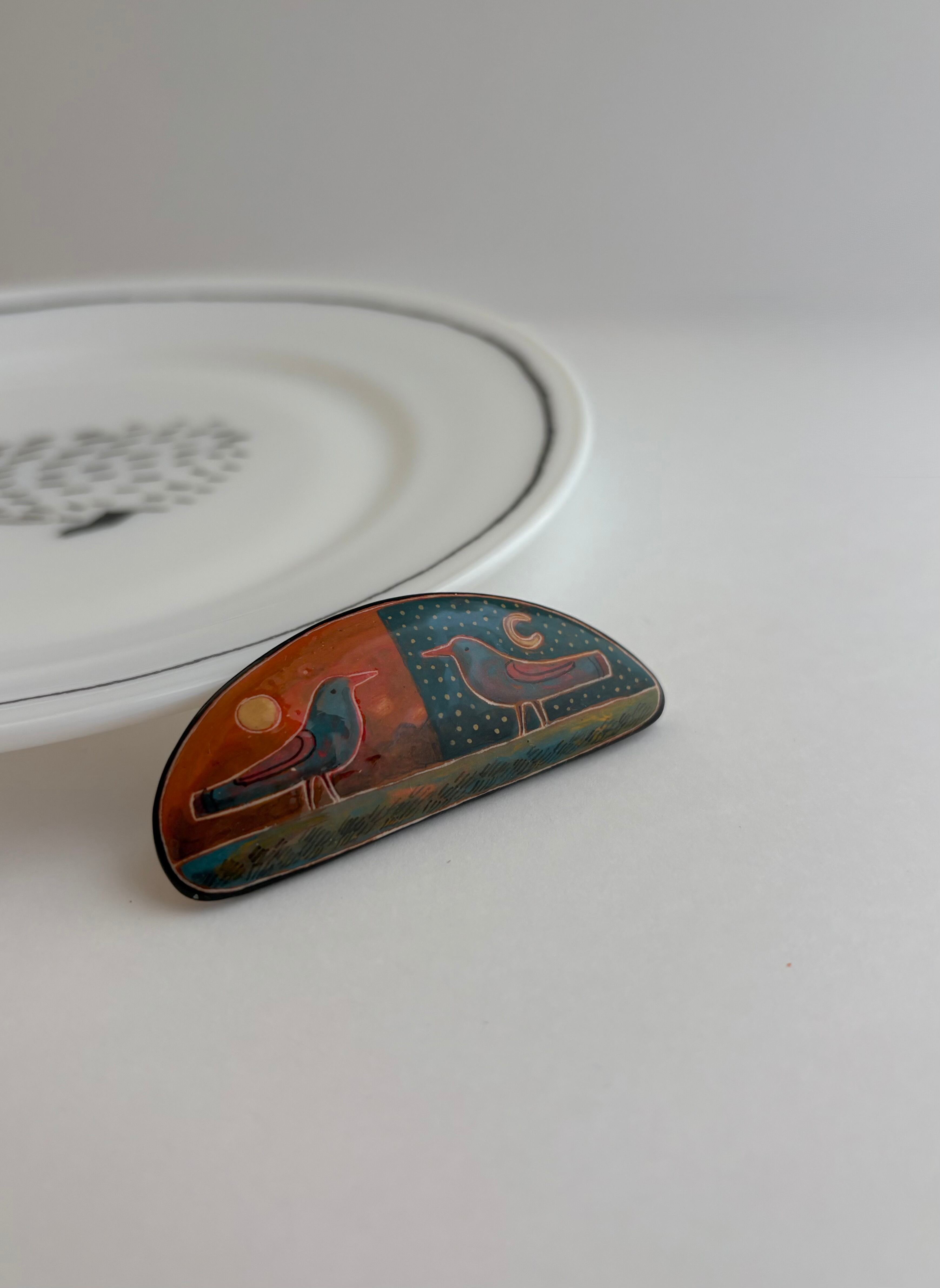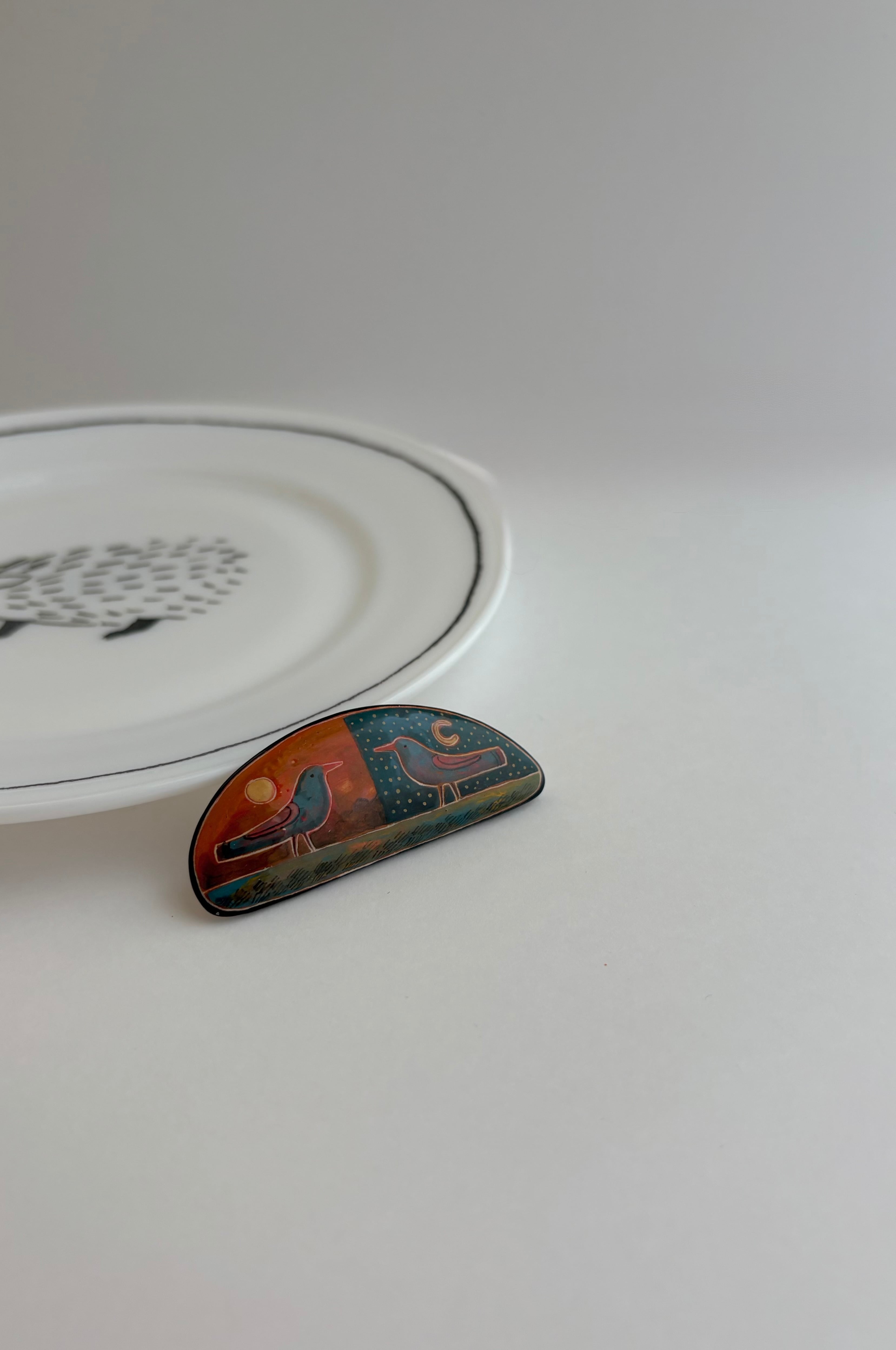 515 リトアニア アドマスさんのブローチ 朝と夜の小鳥たち