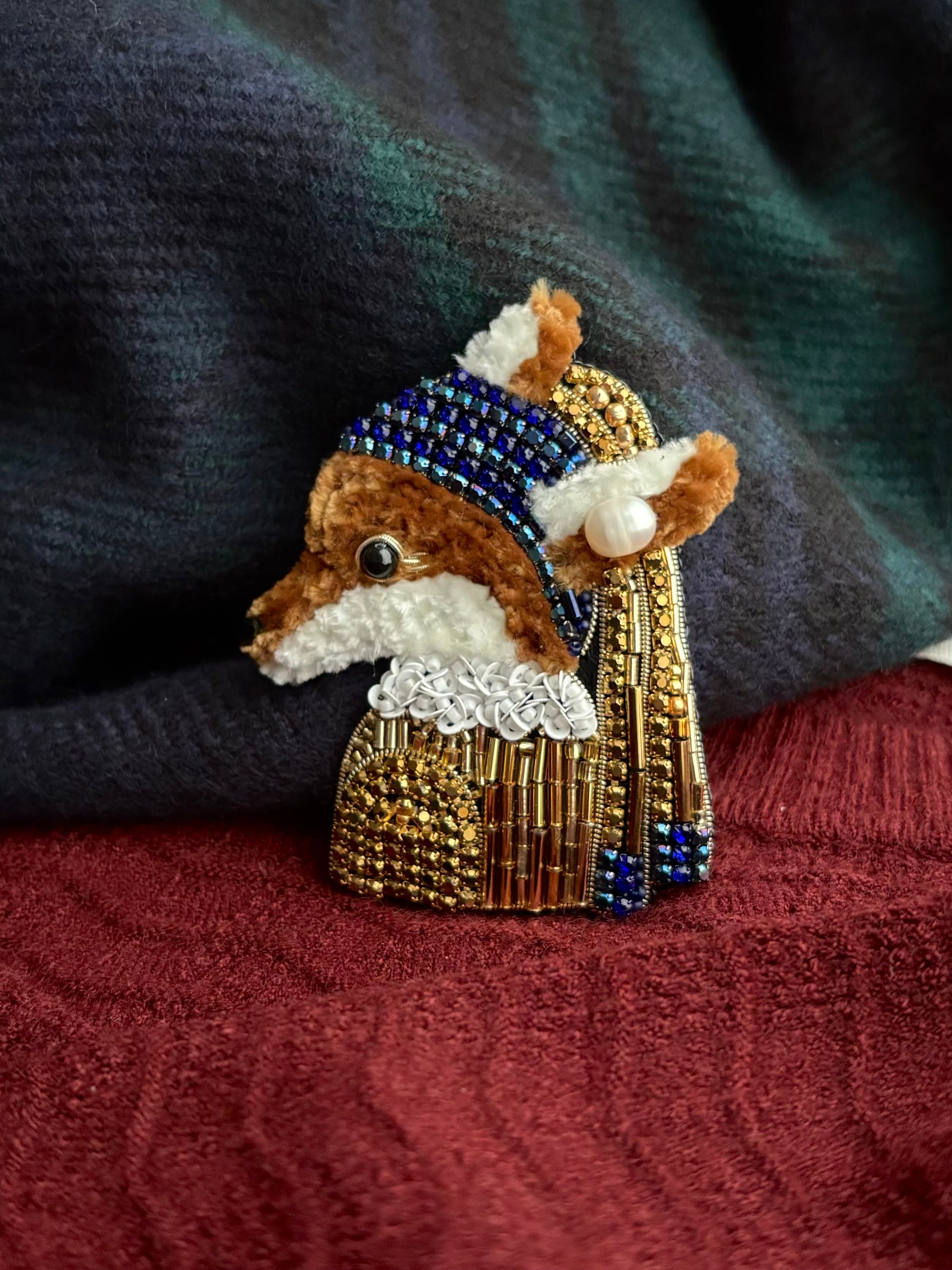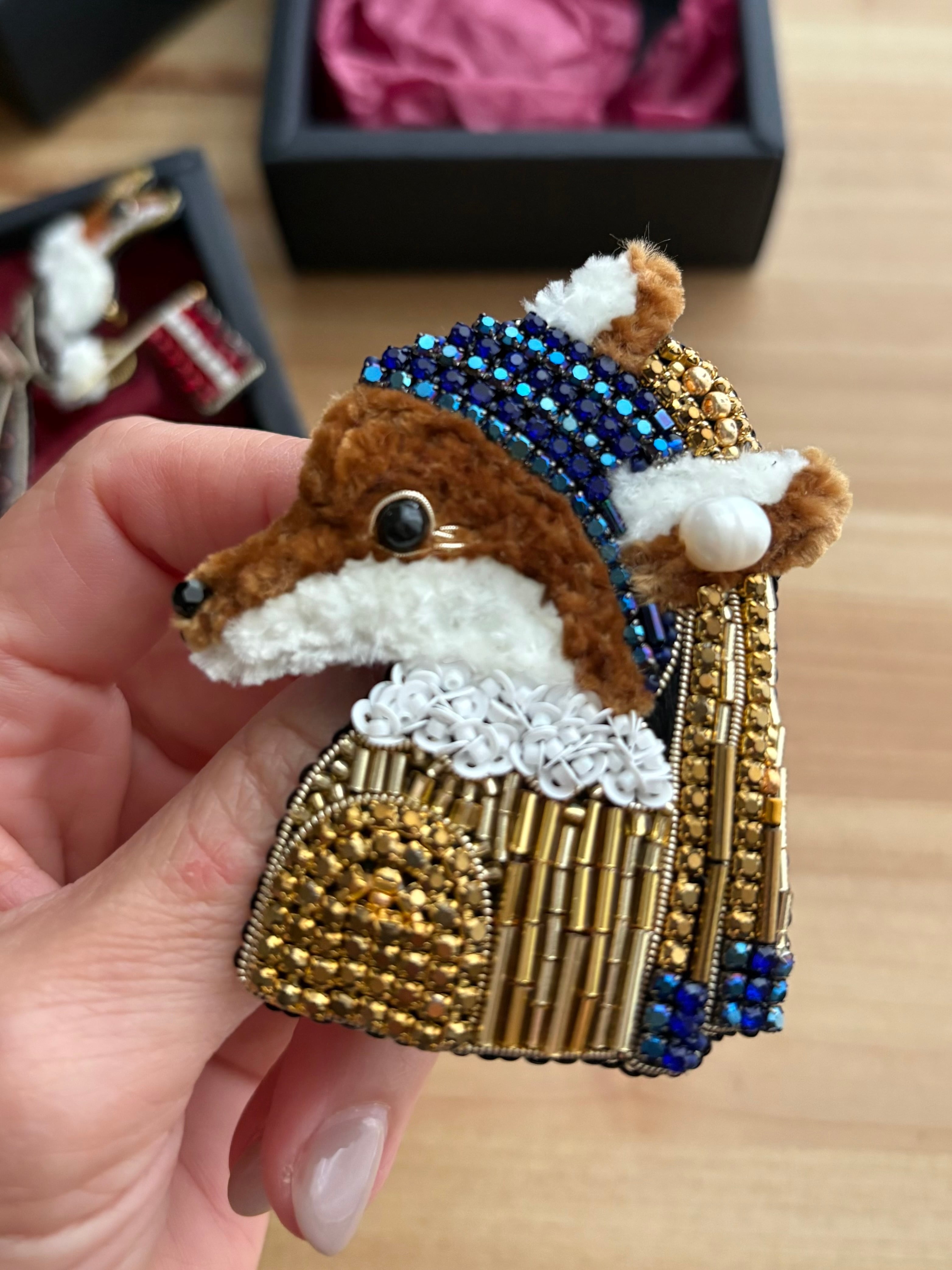 【ご予約品】ラトビア フェルメールの耳飾りオマージュ「キツネの女の子」ブローチ