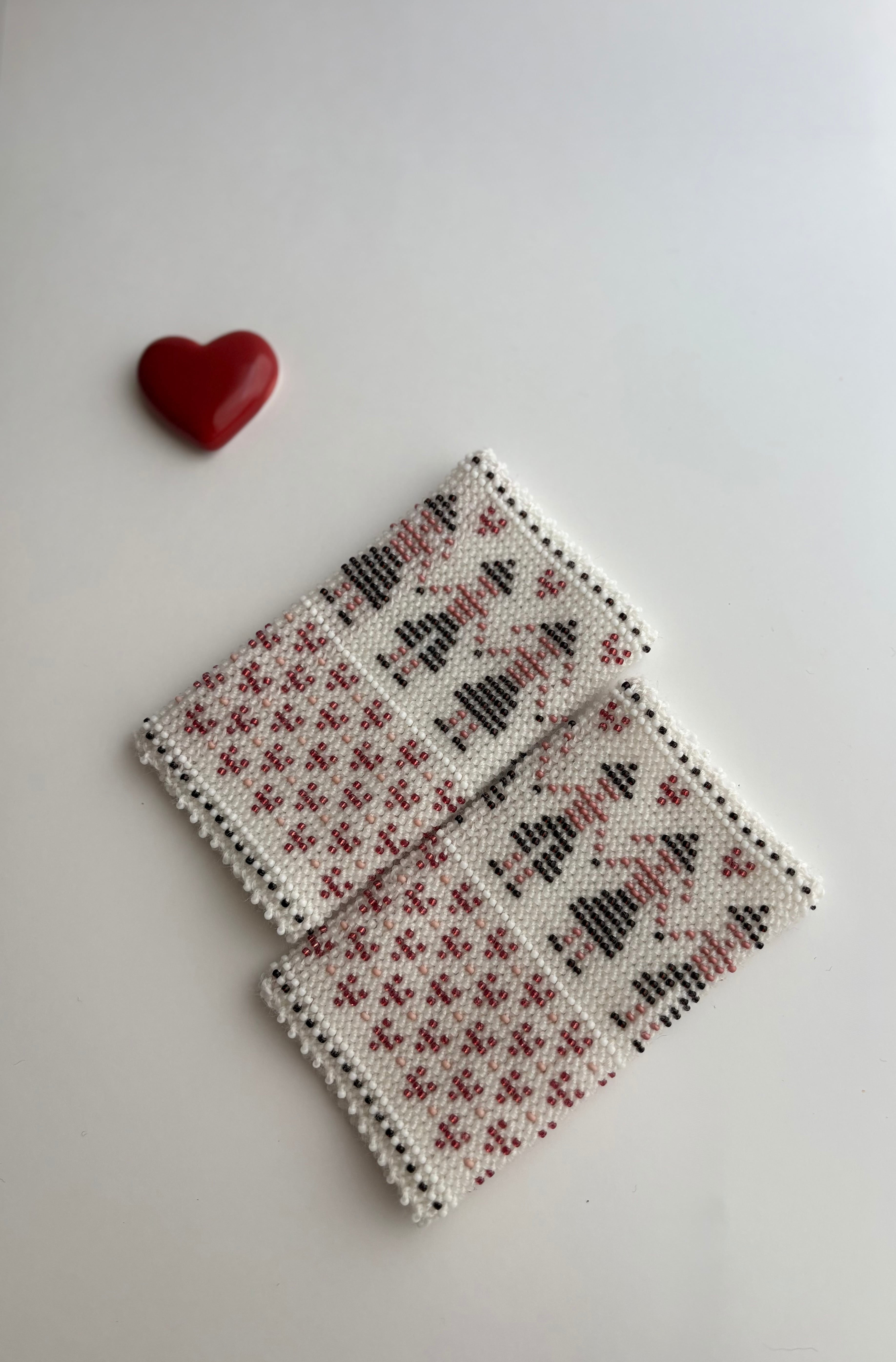 使われているビーズはピンクや透明感のある赤