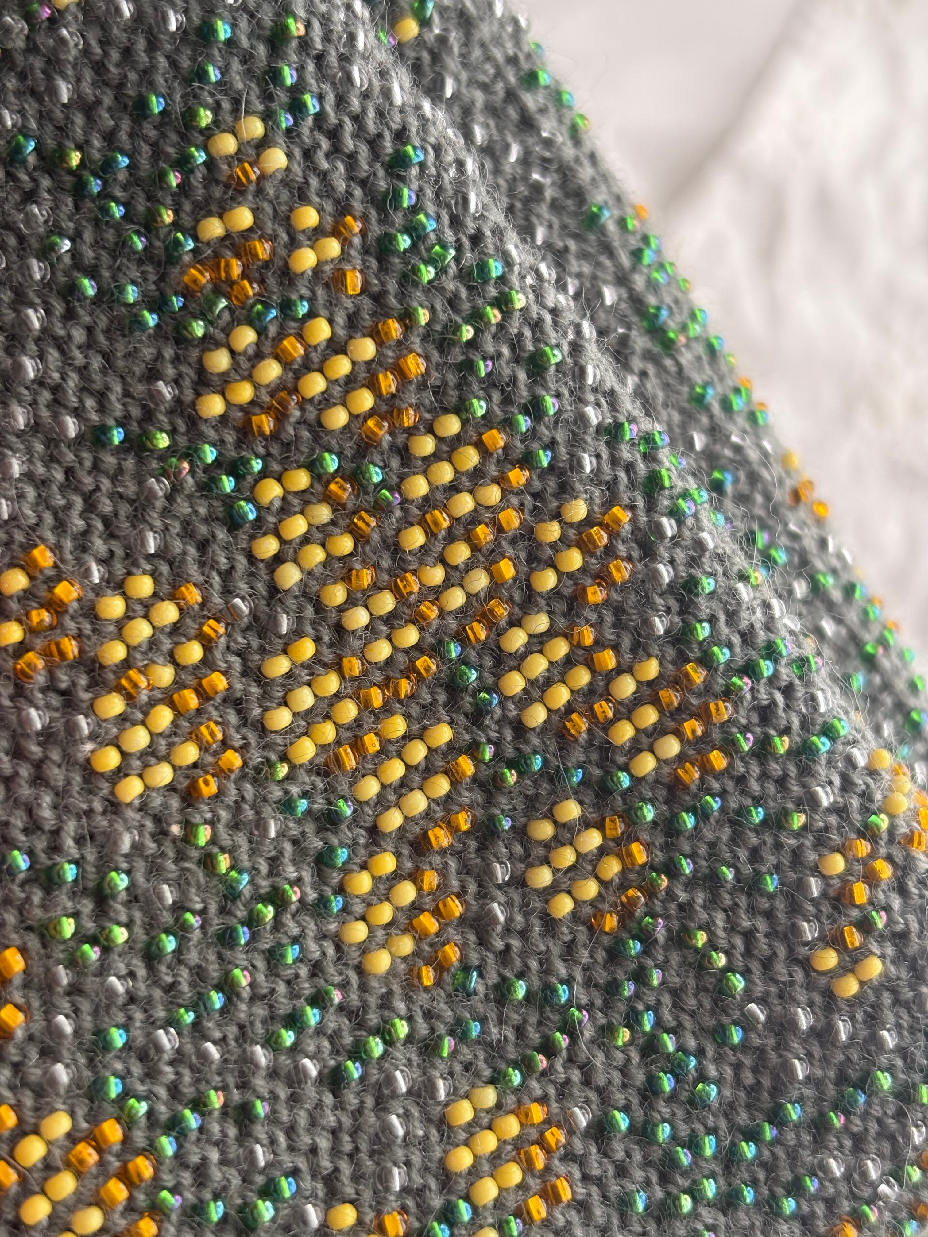 またまわりの透明ビーズで編み込まれた模様もさりげなくキラキラと煌めいてくれ