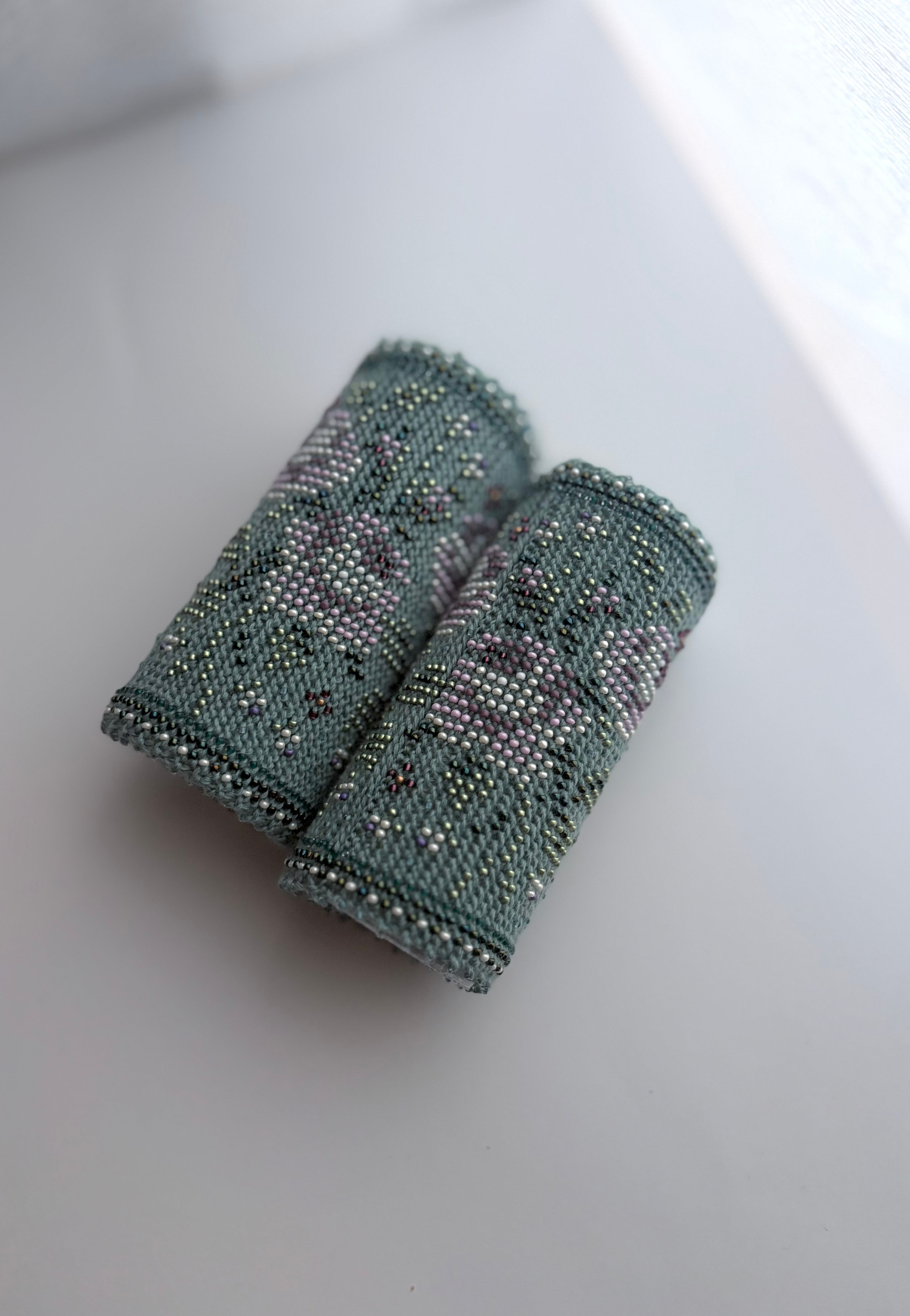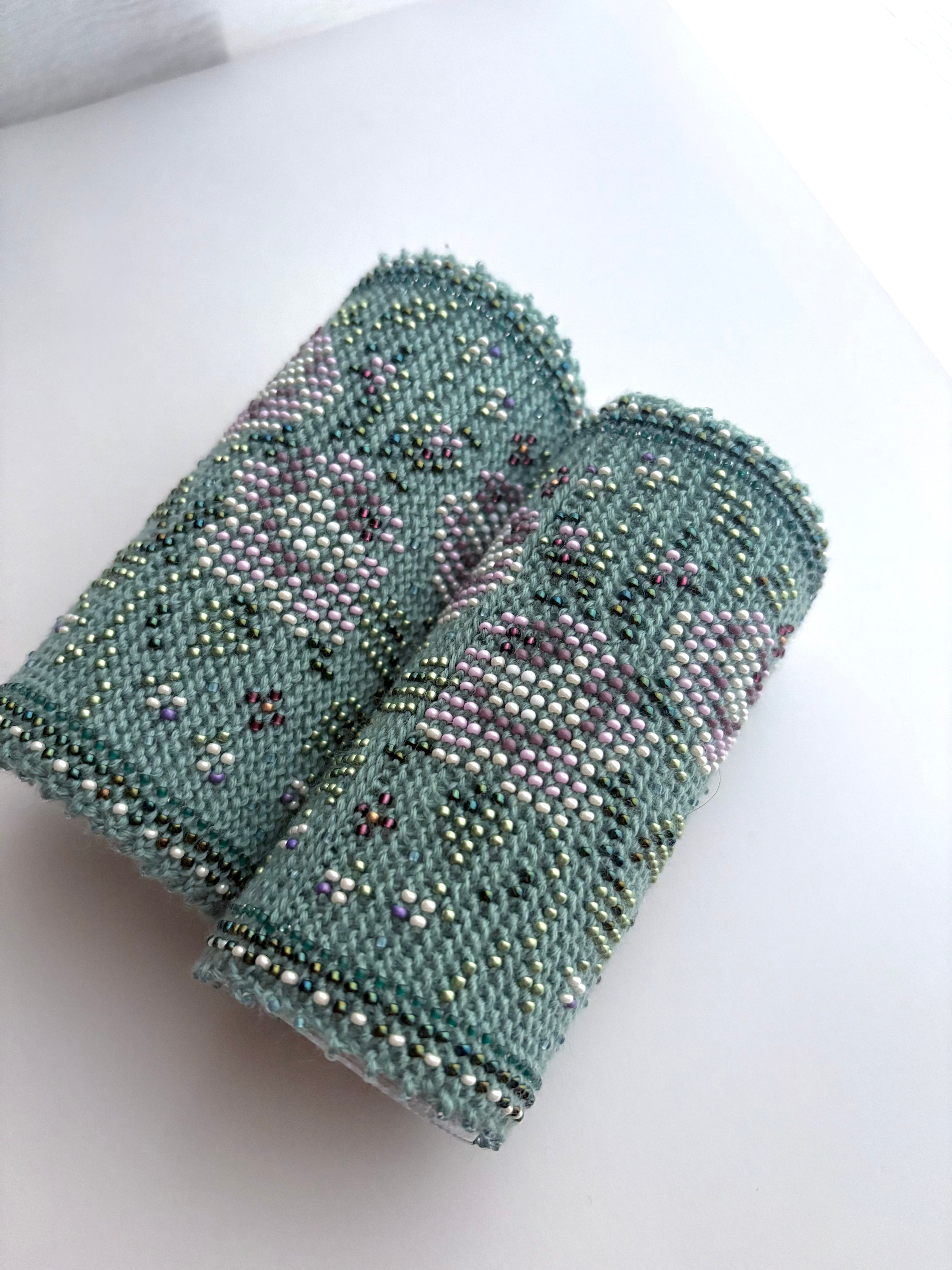 裏面はビーズが響かないよう編まれています。