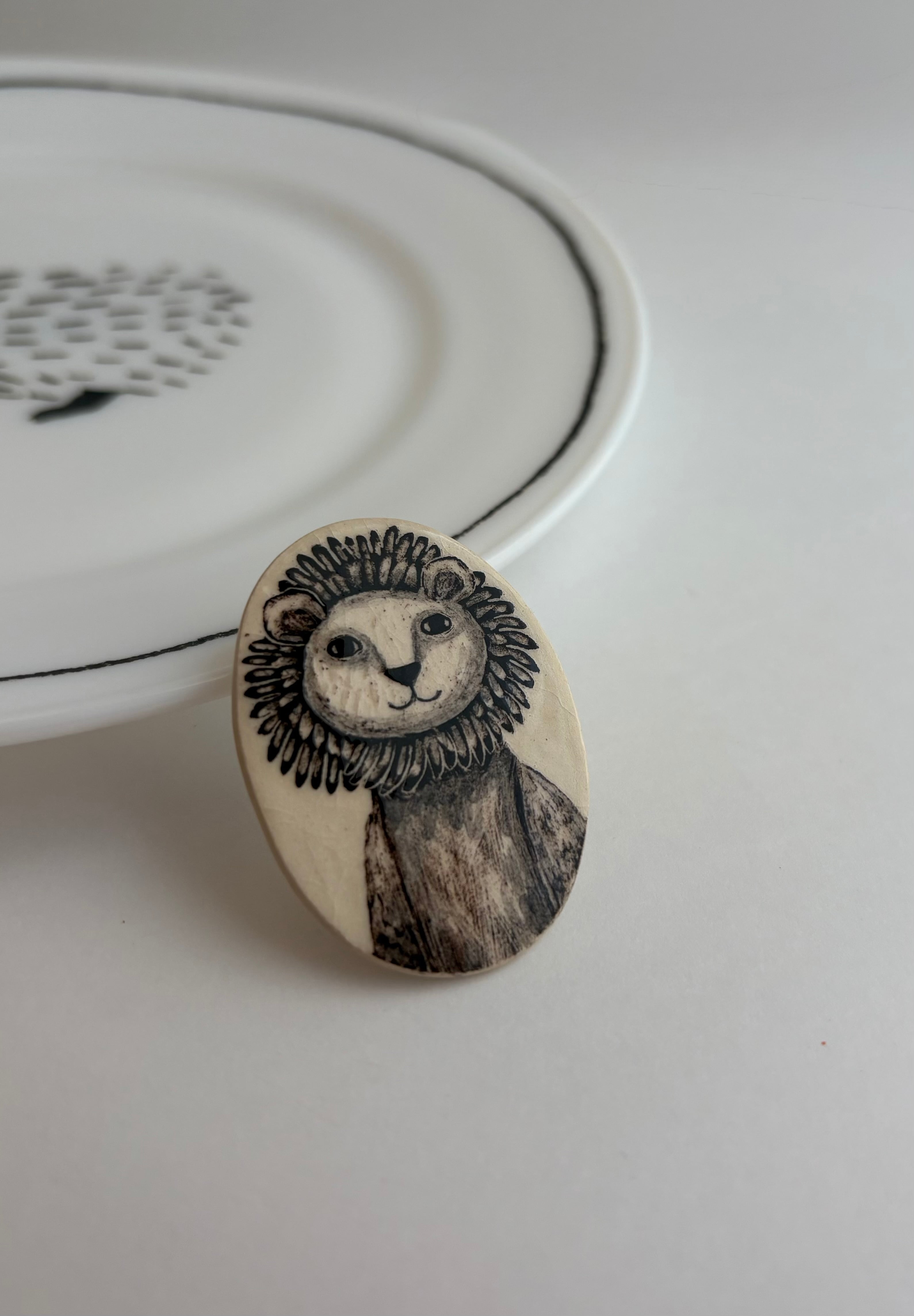 リトアニア アドマスさんのブローチ【monochrome lion】