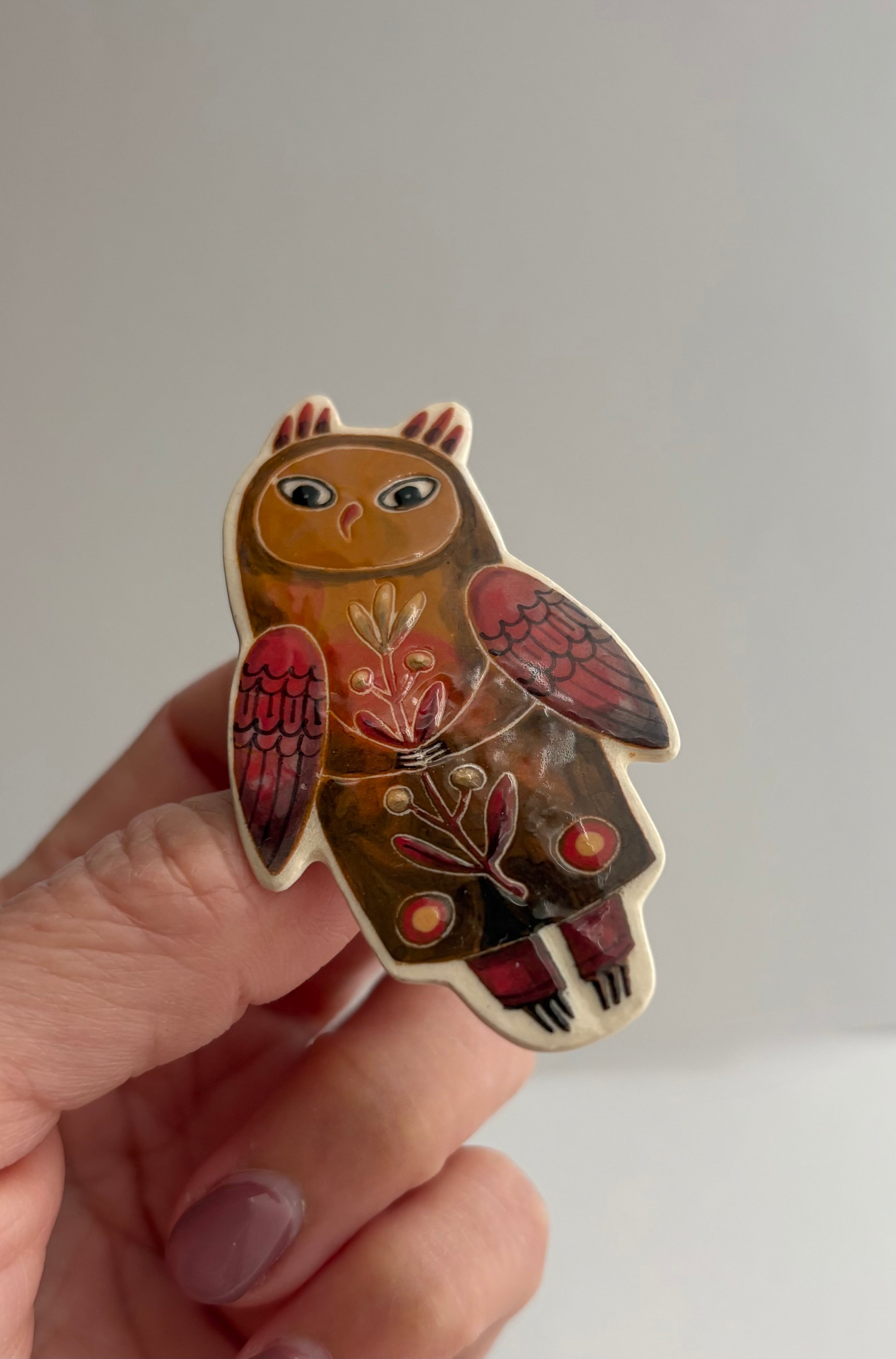 リトアニア Adomasさんの陶器ブローチ フクロウの女の子
