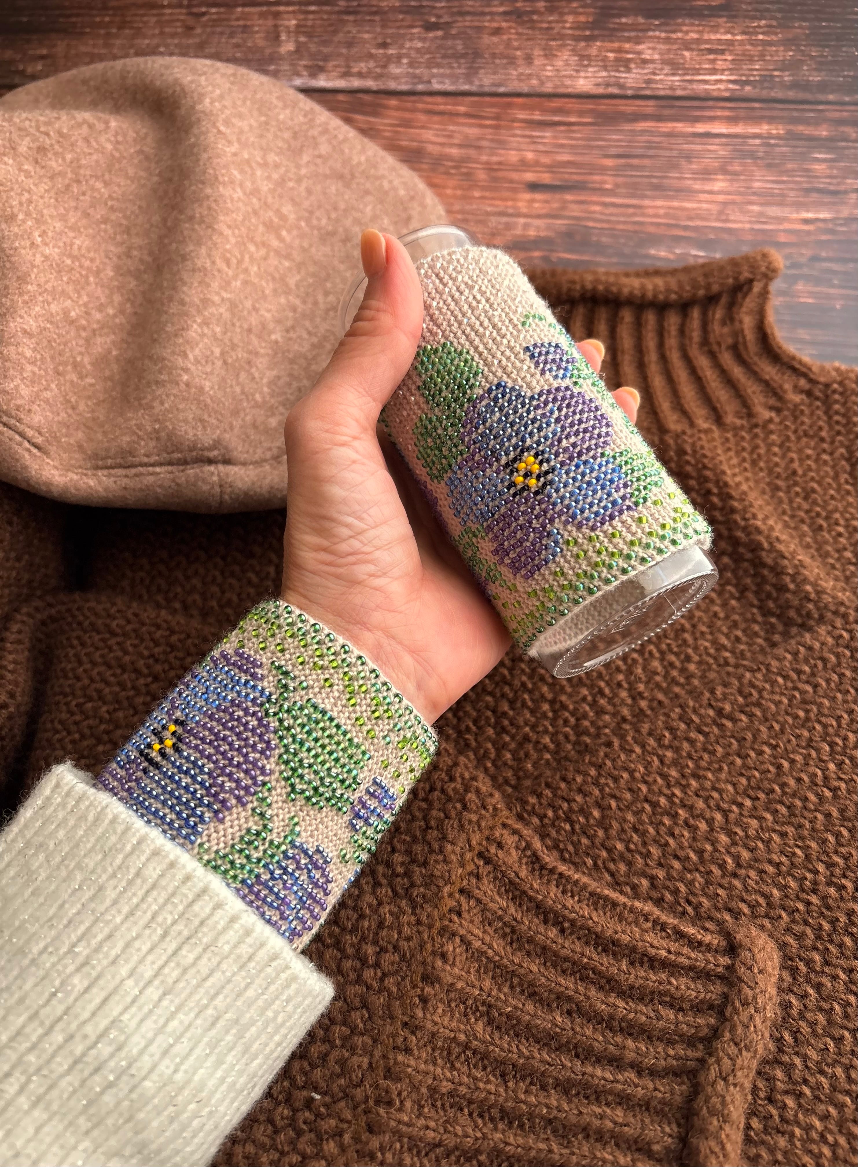 リトアニア editaさんの作るグレージュのベースにすみれのリストウォーマー