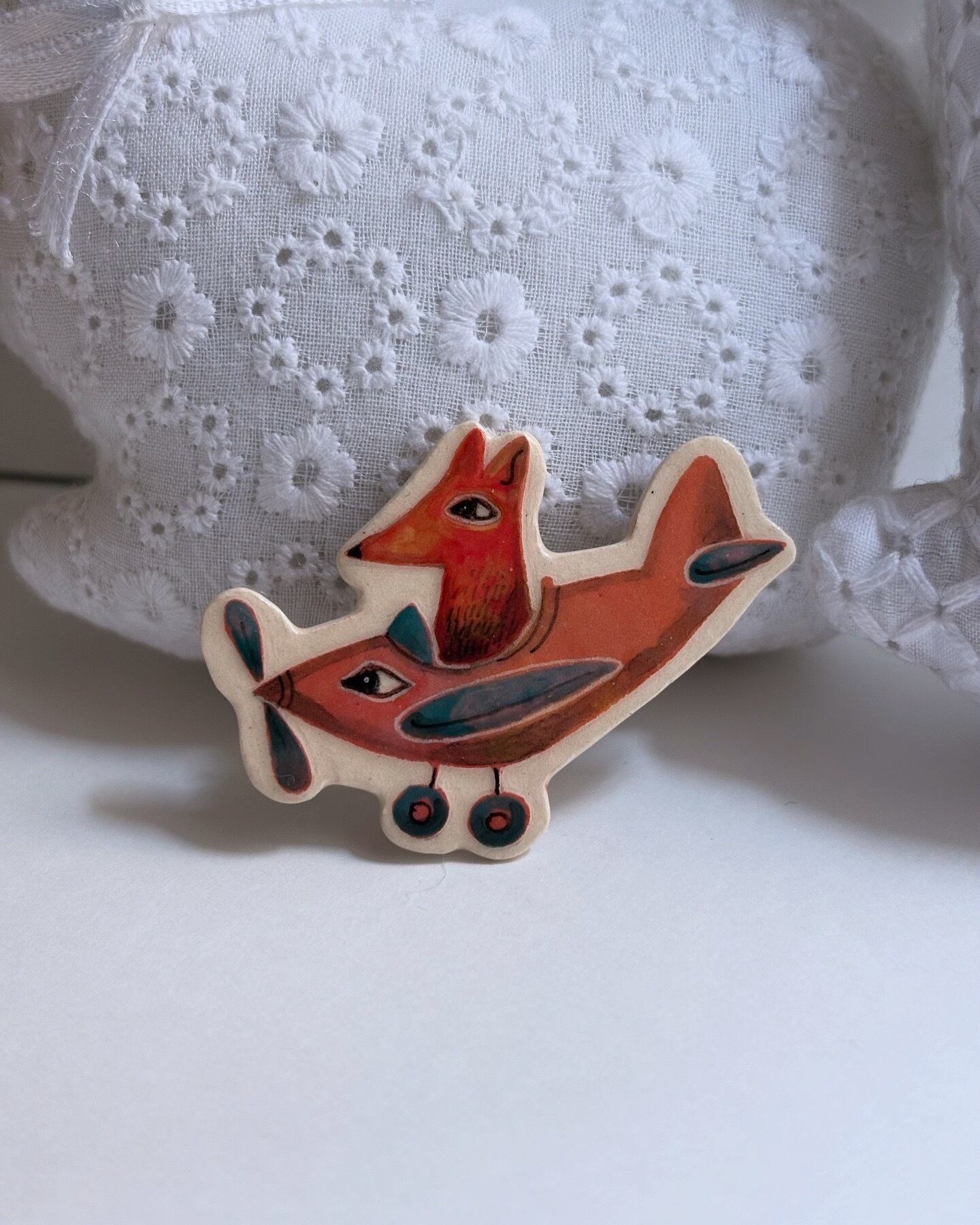 4 リトアニア アドマスさんのブローチ 一心同体♪飛行機に乗るこぎつねさん