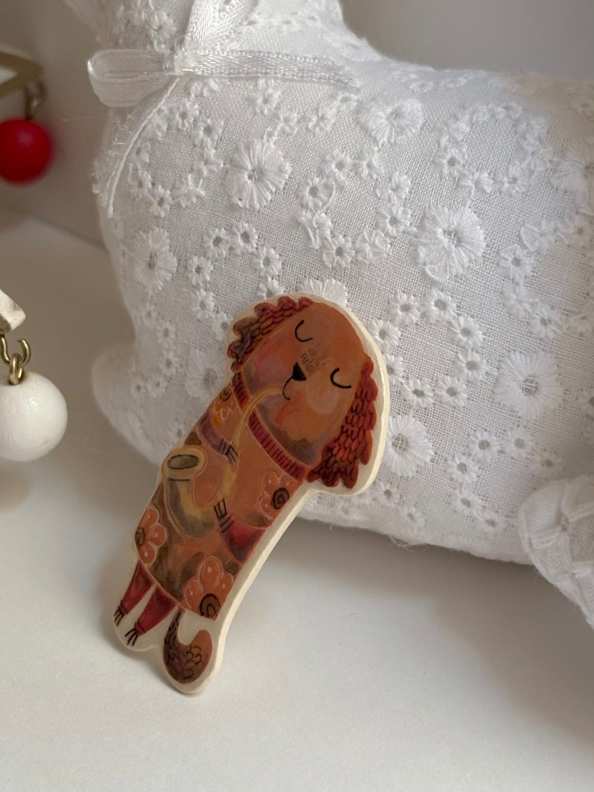 3 リトアニア アドマスさんのブローチ フサフサ耳のサクソフォンを吹く犬さん